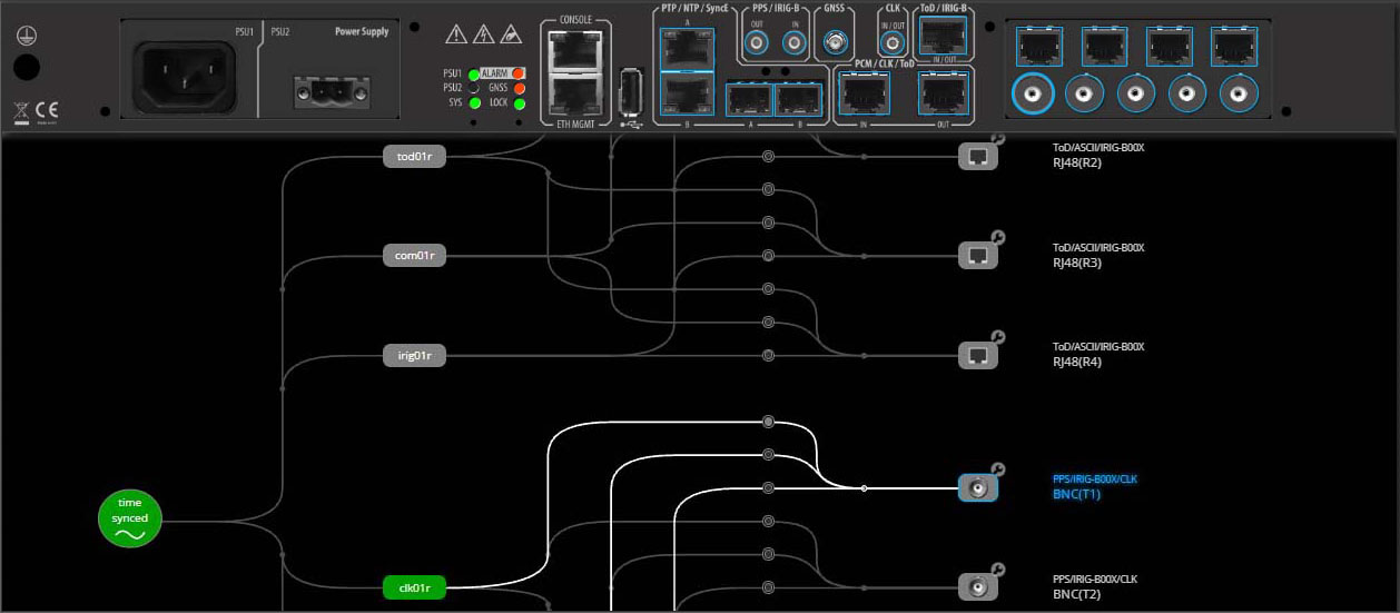 Supports GbE, TCP/IP, PTP, NTP, SyncE, PRP, ToD, IRIG-B, PPS, T1, E1, C37.94, RS-232, G703, GOOSE, SV and more